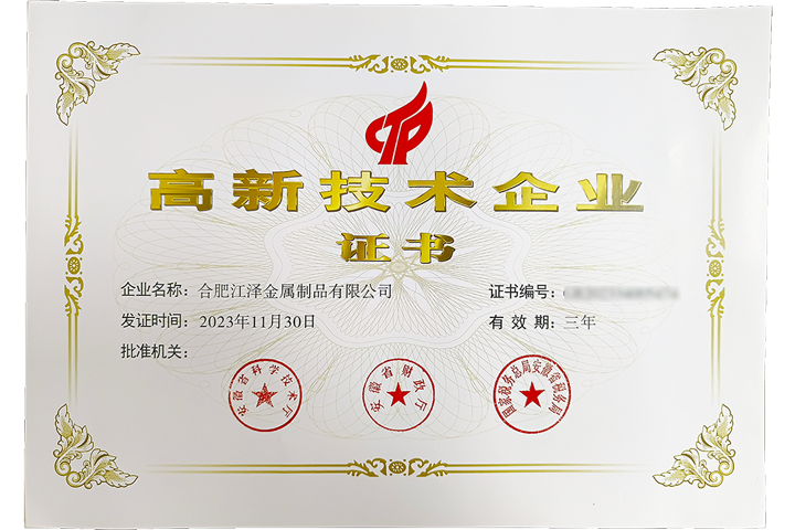 近日,經(jīng)過層層評(píng)審,江澤金屬憑借出色的專業(yè)能力與實(shí)力,成功獲批高新技術(shù)企業(yè)認(rèn)定,標(biāo)志著公司整體技術(shù)水平和自主創(chuàng)新能力邁上了一個(gè)新臺(tái)階,對(duì)公司提升企業(yè)品牌形象、促進(jìn)企業(yè)轉(zhuǎn)型升級(jí)、提高企業(yè)市場(chǎng)價(jià)值和資本價(jià)值、吸引核心人才等方面有著重要意義。